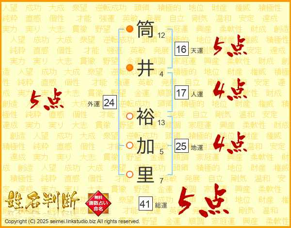 筒井裕加里さんの総運は41画の5点!