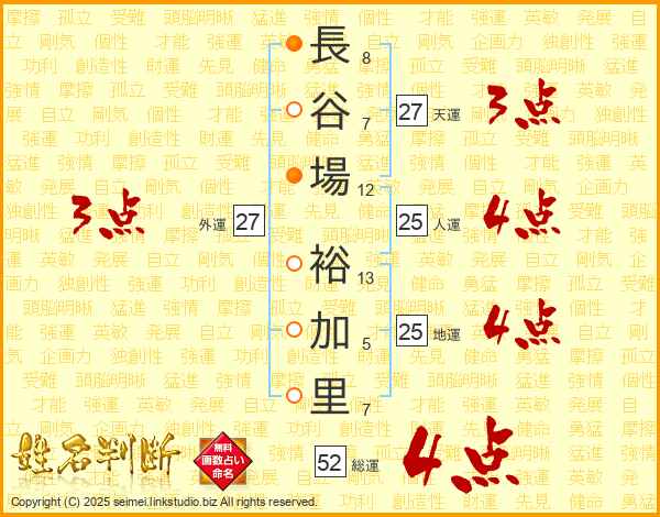 長谷場裕加里さんの総運は52画の4点!