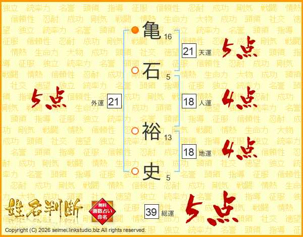 亀石裕史さんの総運は39画の5点!