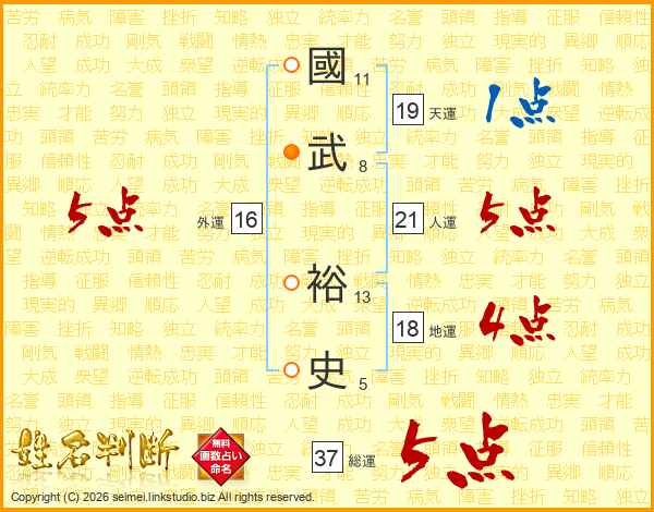 國武裕史さんの総運は37画の5点!