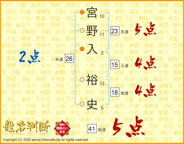 宮野入裕史さんの総運は41画の5点!