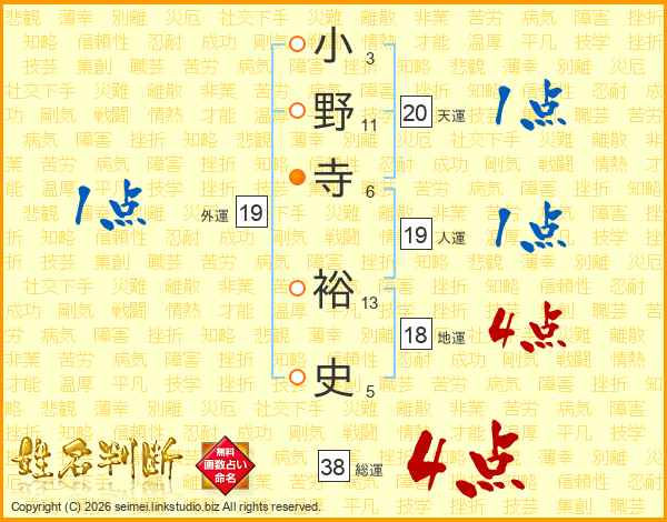 小野寺裕史さんの総運は38画の4点!