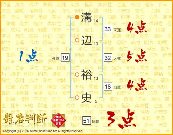溝(14画)辺(19画) 裕(13画)史(5画)