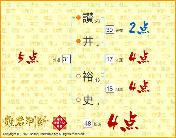 讃(26画)井(4画) 裕(13画)史(5画)