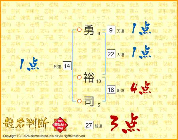 勇裕司さんの総運は27画の3点!