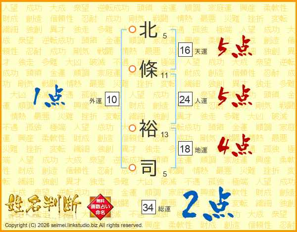 北條裕司さんの天運は16画の5点!