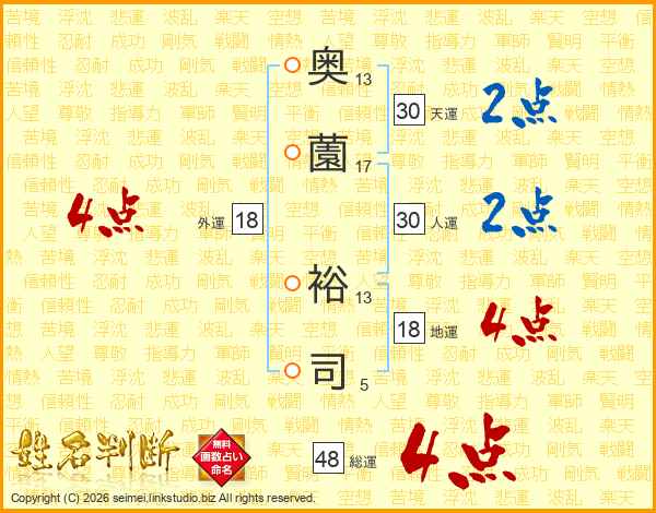 奥(13画)薗(17画) 裕(13画)司(5画)