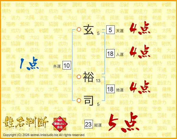 玄裕司さんの総運は23画の5点!