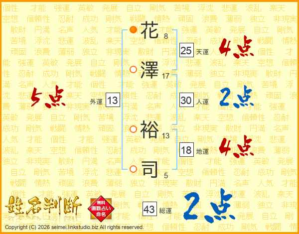 花澤裕司さんの総運は43画の2点!