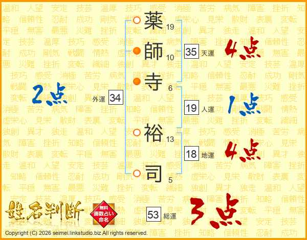 薬師寺裕司さんの総運は53画の3点!