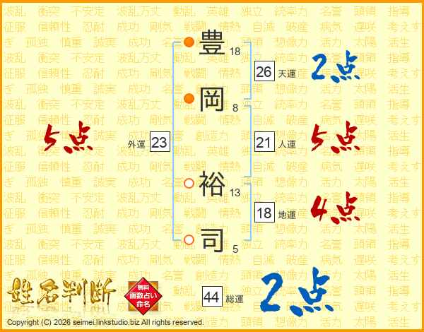 豊(18画)岡(8画) 裕(13画)司(5画)
