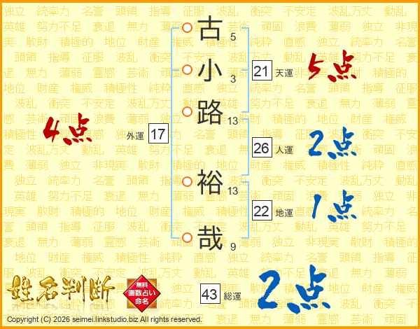 古小路裕哉さんの総運は43画の2点!