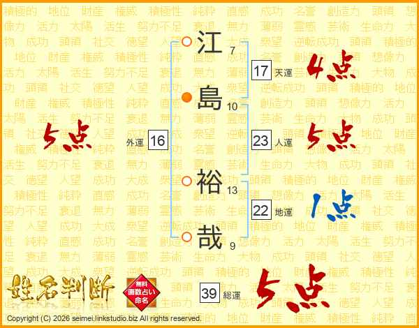 江島裕哉さんの総運は39画の5点!