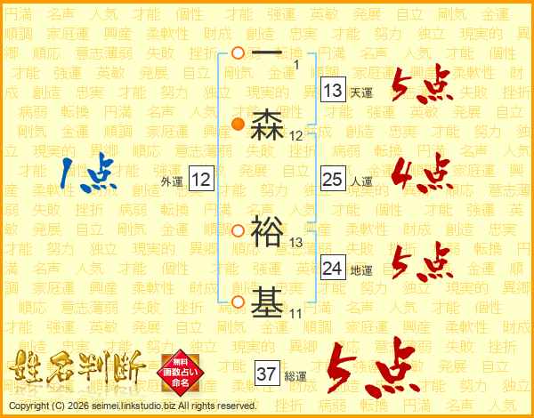 一森裕基さんの総運は37画の5点!