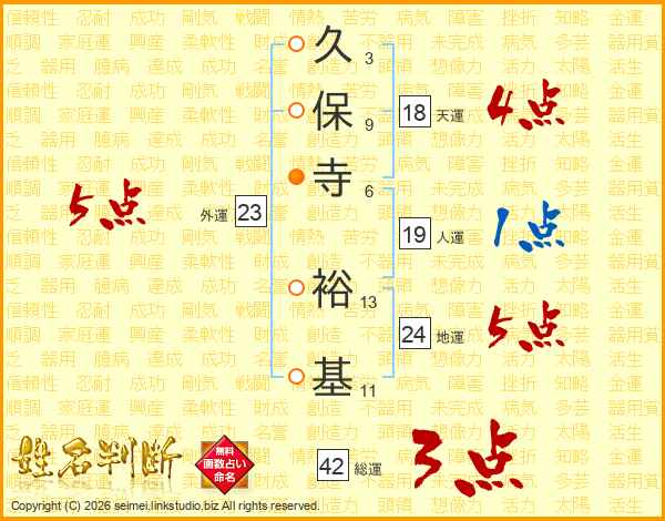 久(3画)保(9画)寺(6画) 裕(13画)基(11画)
