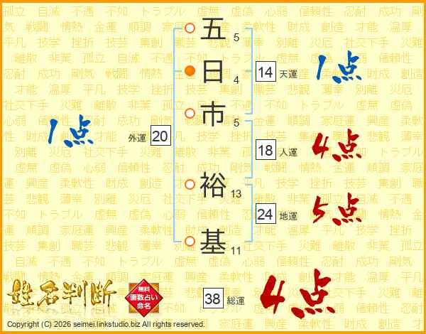 五(5画)日(4画)市(5画) 裕(13画)基(11画)