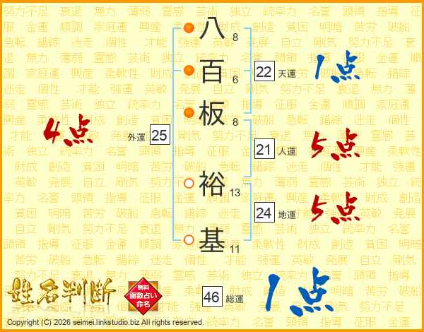 八百板裕基さんの総運は46画の1点!