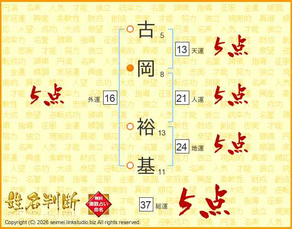 古岡裕基さんの総運は37画の5点!