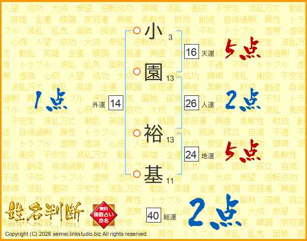 小園裕基さんの人運は26画の2点!