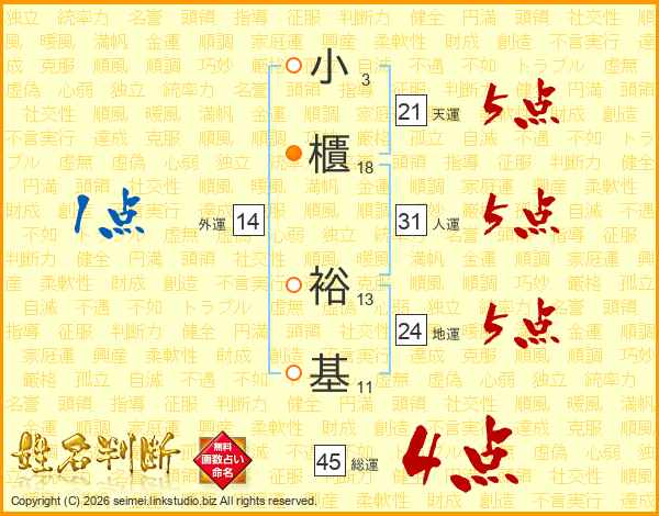 小櫃裕基さんの人運は31画の5点!