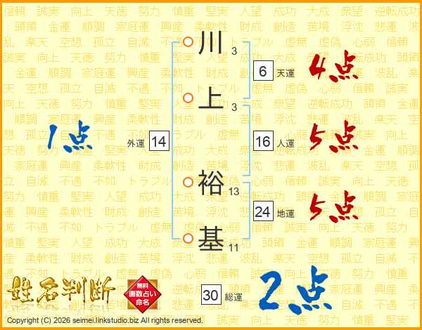 川上裕基さんの総運は30画の2点!