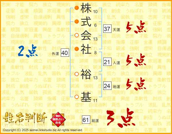 株(10画)式(6画)会(13画)社(8画) 裕(13画)基(11画)