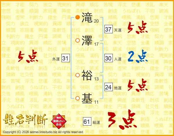 滝澤裕基さんの天運は37画の5点!