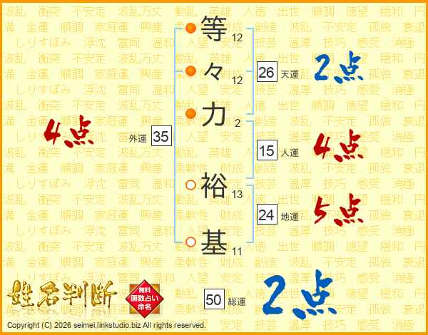 等々力裕基さんの天運は26画の2点!