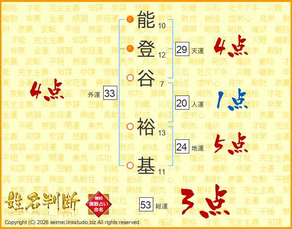 能(10画)登(12画)谷(7画) 裕(13画)基(11画)