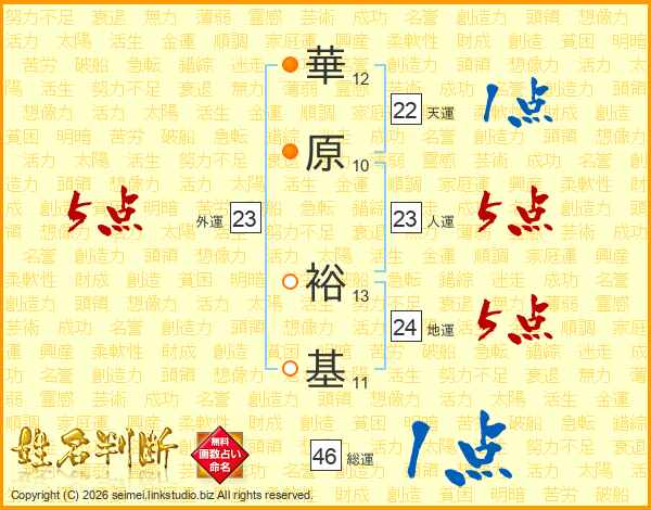 華原裕基さんの総運は46画の1点!