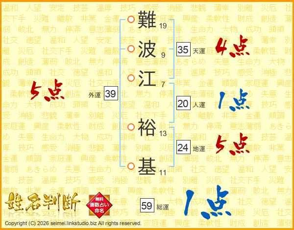 難波江裕基さんの外運は39画の5点!