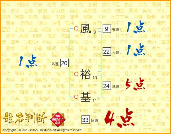 風裕基さんの総運は33画の4点!