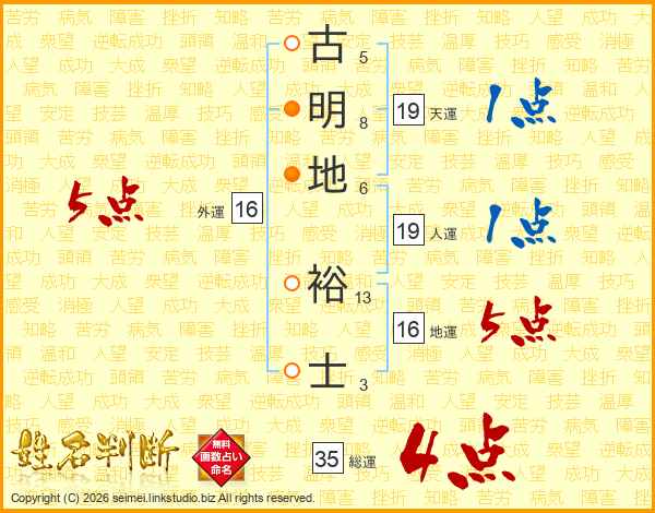 古(5画)明(8画)地(6画) 裕(13画)士(3画)