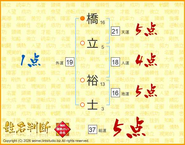 橋立裕士さんの天運は21画の5点!