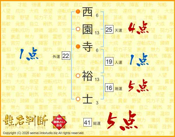 西園寺裕士さんの総運は41画の5点!