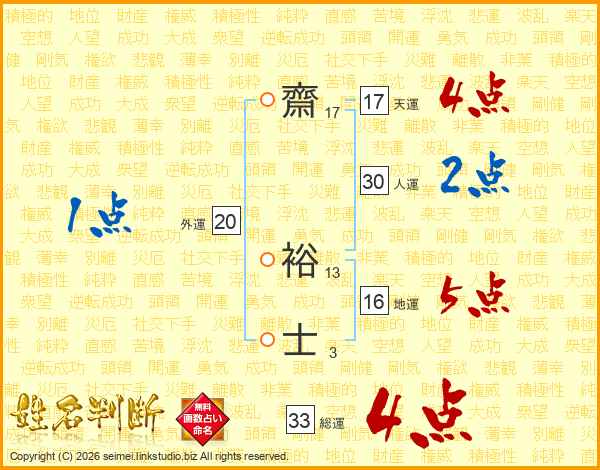 齋裕士さんの総運は33画の4点!
