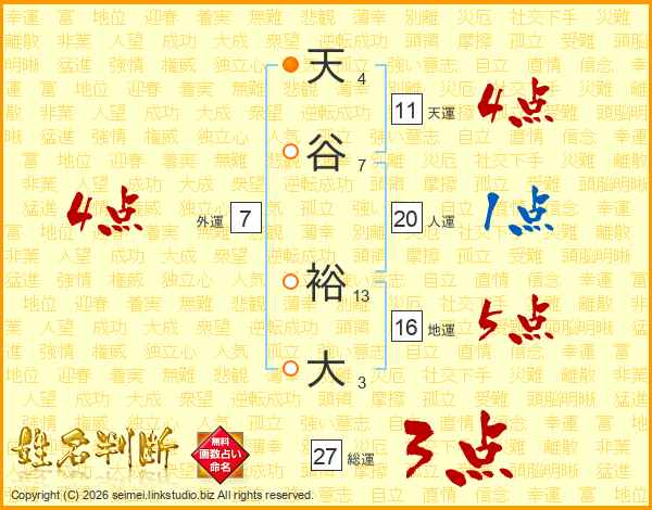 天谷裕大さんの天運は11画の4点!