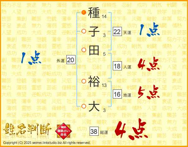 種(14画)子(3画)田(5画) 裕(13画)大(3画)