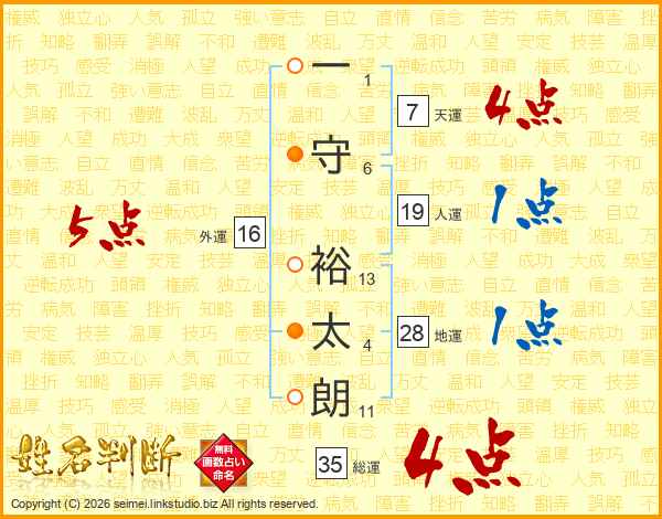 一守裕太朗さんの総運は35画の4点!