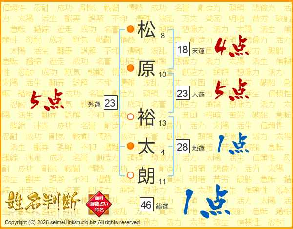 松(8画)原(10画) 裕(13画)太(4画)朗(11画)
