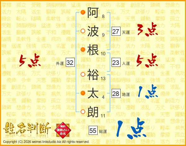 阿波根裕太朗さんの外運は32画の5点!