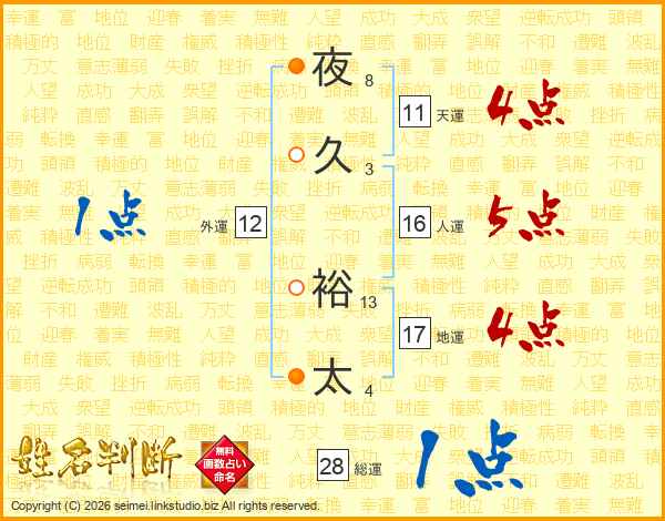 夜久裕太さんの天運は11画の4点!