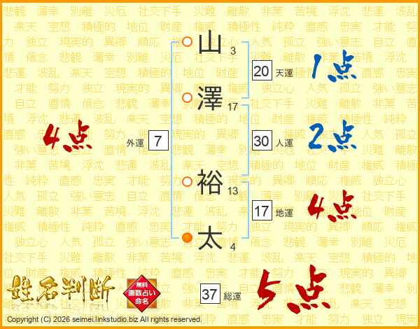 山澤裕太さんの総運は37画の5点!