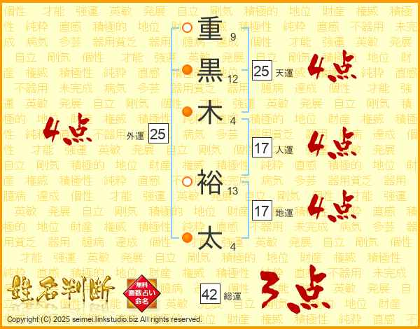 重黒木裕太さんの天運は25画の4点!