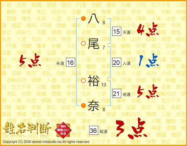 八尾裕奈さんの外運は16画の5点!