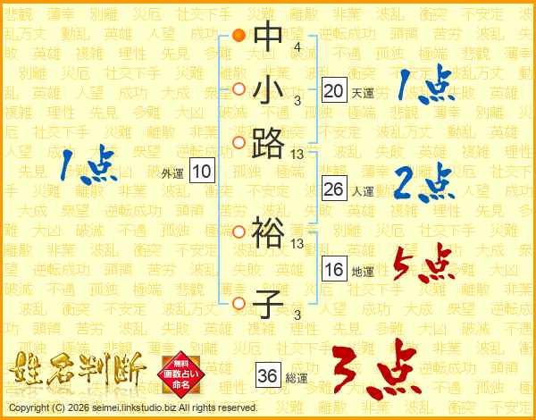 中(4画)小(3画)路(13画) 裕(13画)子(3画)
