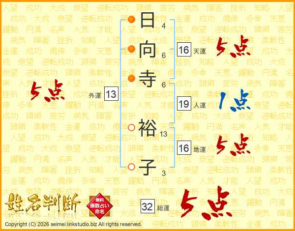 日向寺裕子さんの総運は32画の5点!