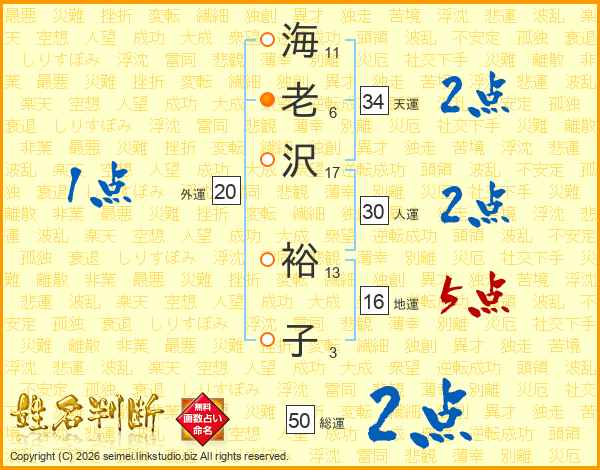 海老沢裕子さんの総運は50画の2点!