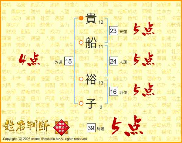 貴船裕子さんの天運は23画の5点!