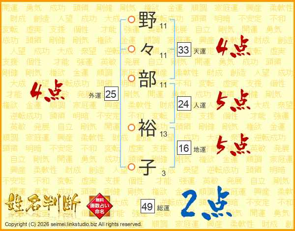野々部裕子さんの総運は49画の2点!